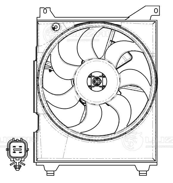 Электровентилятор кондиционера для автомобилей Hyundai Sonata (EF) (98-) (с кожухом) (4-х конт.)
