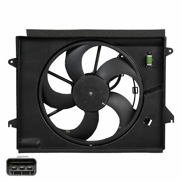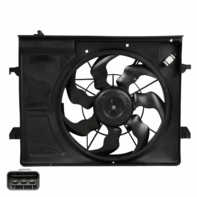 Электровентилятор охлаждения для автомобилей KIA Cerato (18-)/Ceed (18-)/Seltos (19-)/Soul III (19-) 1.6i/2.0i (с кожухом и резистором)