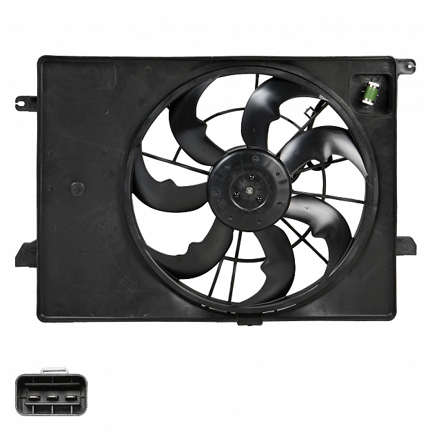 Электровентилятор охлаждения для автомобилей KIA Sportage III (10-)/Hyundai ix35 (10-) (с кожухом и резистором) (тип Doowon)