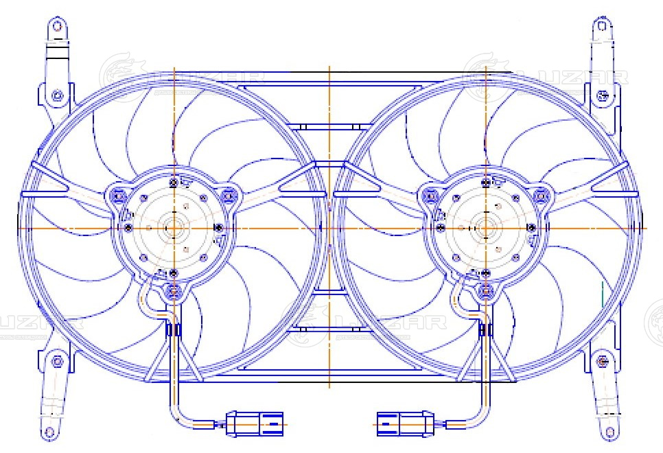 Электровентилятор охлаждения для автомобилей УАЗ Patriot (10-) (2 вент.) (с кожухом) (прямые кроншт.)
