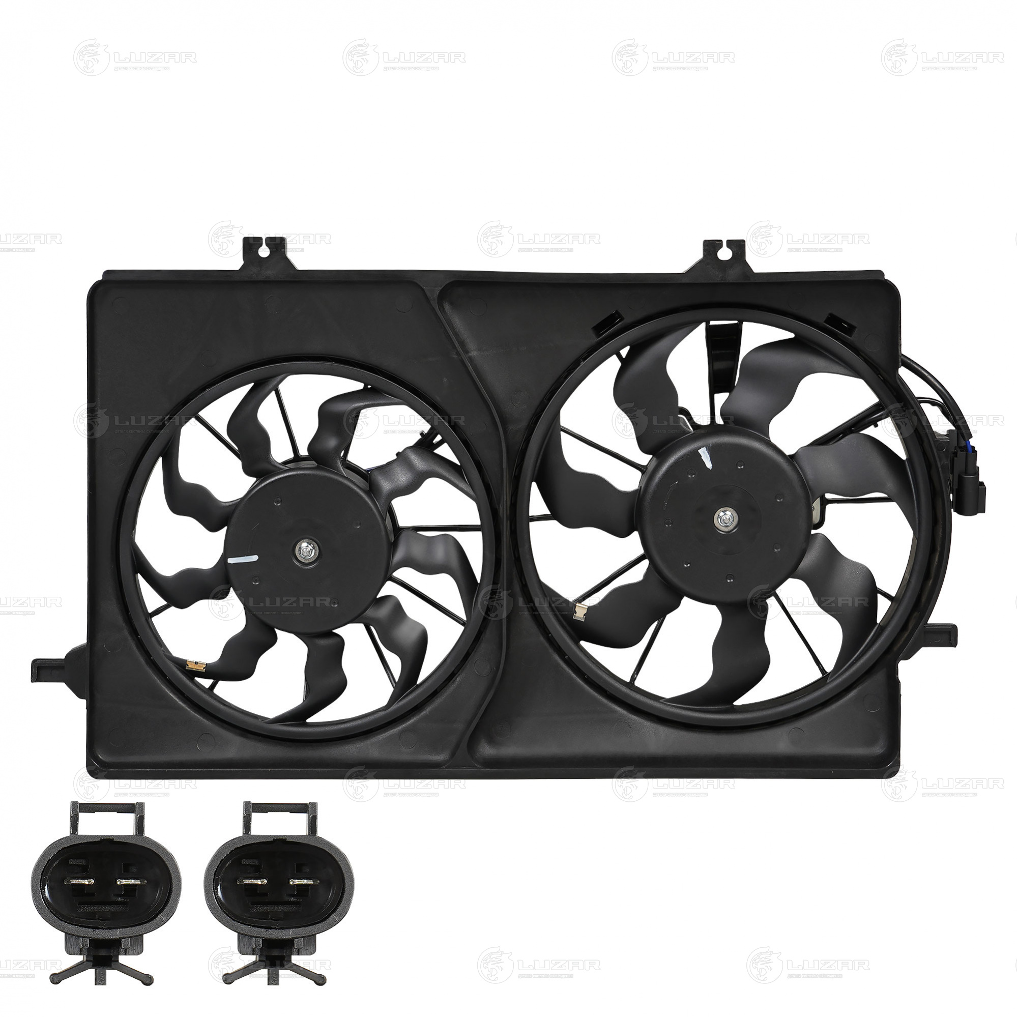 Электровентилятор охлаждения для автомобилей Приора (2 вент.) (с кожухом) (тип Halla)
