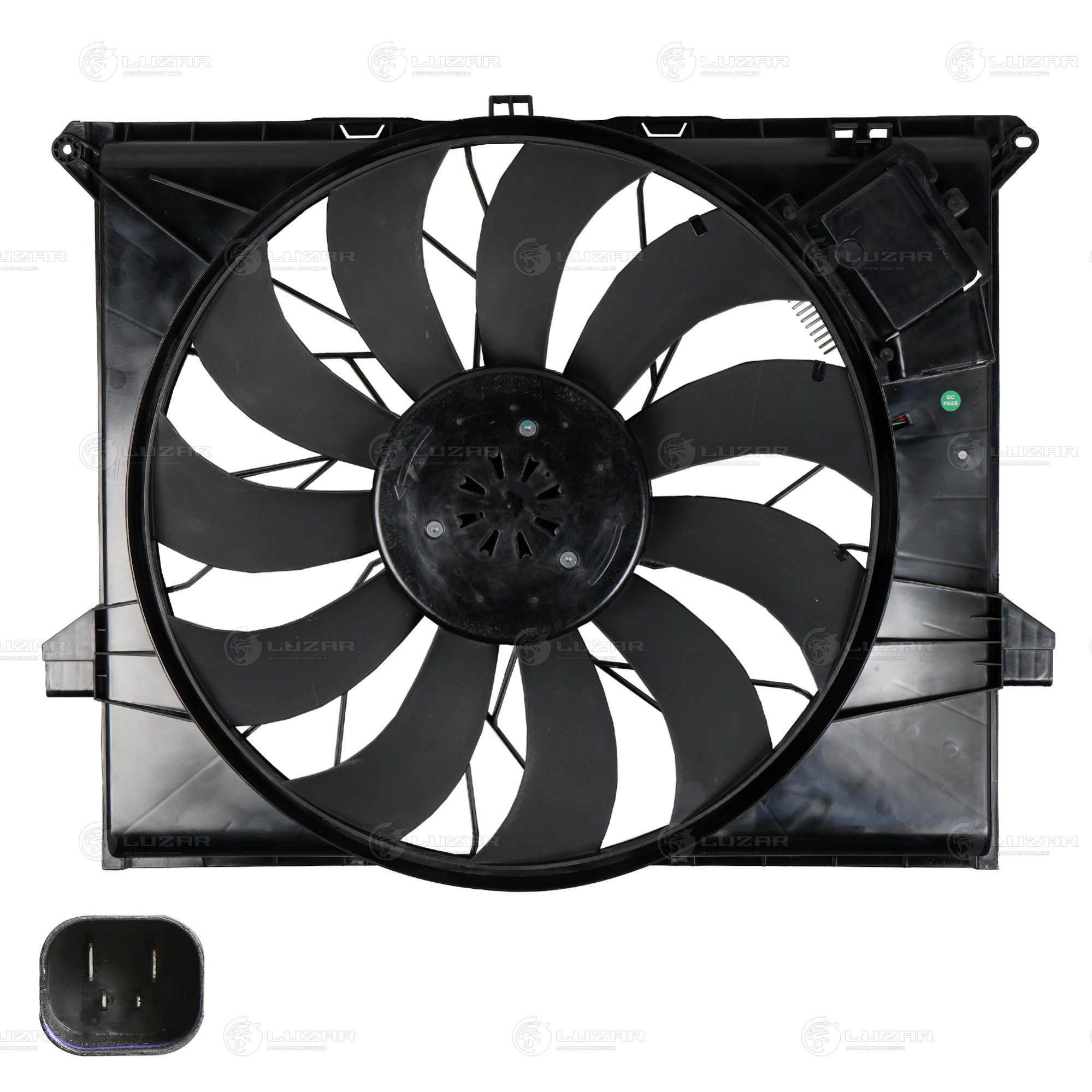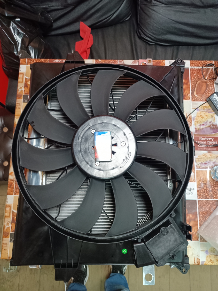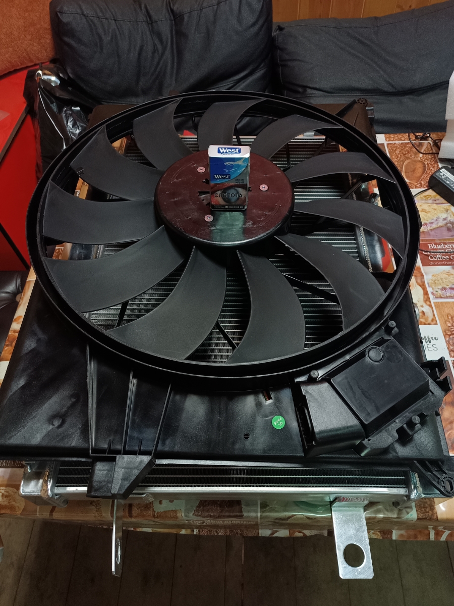 Очень большой вентилятор, с блоком ШИМ, купил к свапу дизеля ниссан в уаз. По размеру подошел к радиатору от ТЛС105.