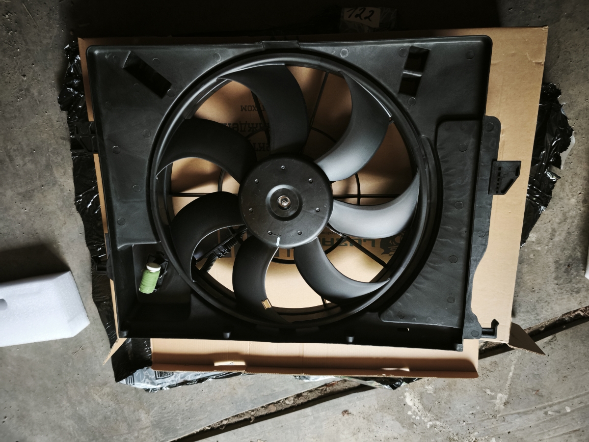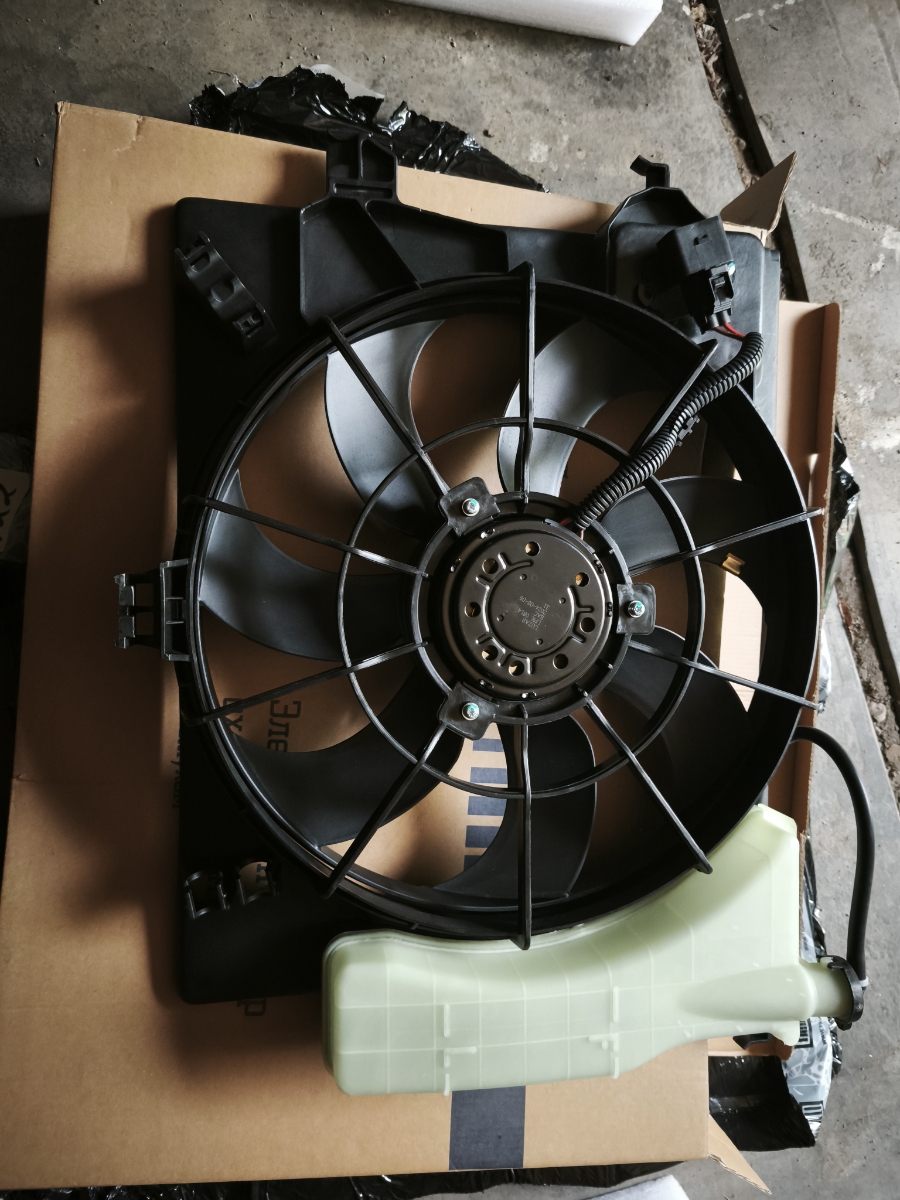 Электровентилятор охлаждения для автомобилей Hyundai Solaris (10-)/KIA Rio (10-) (с кожухом и резистором) A/C+
