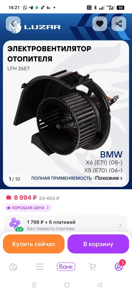 Электровентилятор отопителя для автомобилей BMW X5 (E70) (06-)/X6 (E71) (08-)