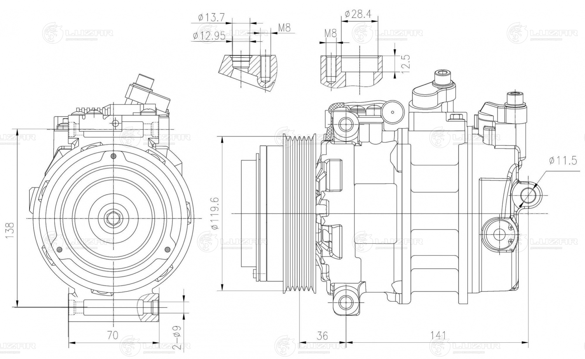 Компрессор кондиционера для автомобилей C (W202) (93-)/E (W210) (95-)/Sprinter (95-)
