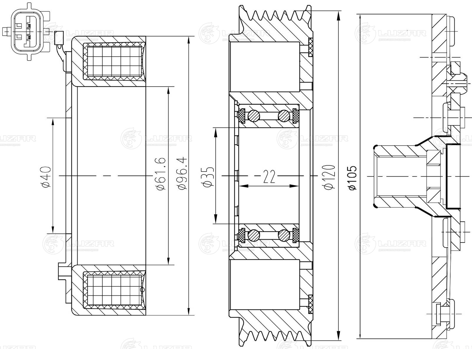 Муфта электромагнитная для компрессора кондиционера LCAC 0178 LUZAR