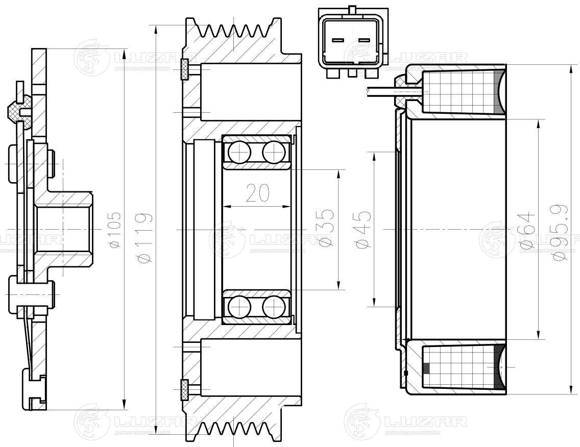 Муфта электромагнитная для компрессороа кондиционера LCAC 20Z6 LUZAR
