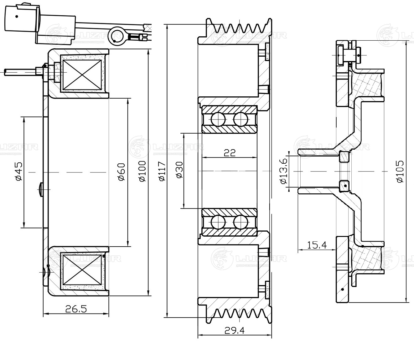 Муфта электромагнитная компрессора кондиционера для автомобилей Лада 2170-72 Приора (тип Halla)