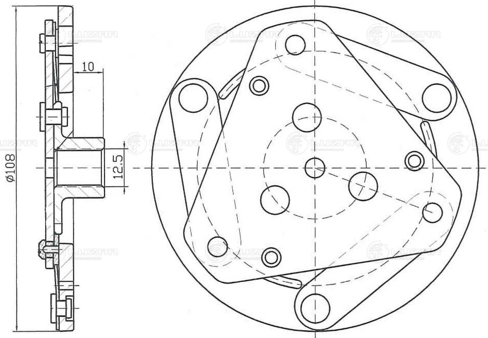 Пластина прижимная муфты компрессора кондиционера для автомобилей Лада 2190 "Гранта" (15-) (тип KDAC)