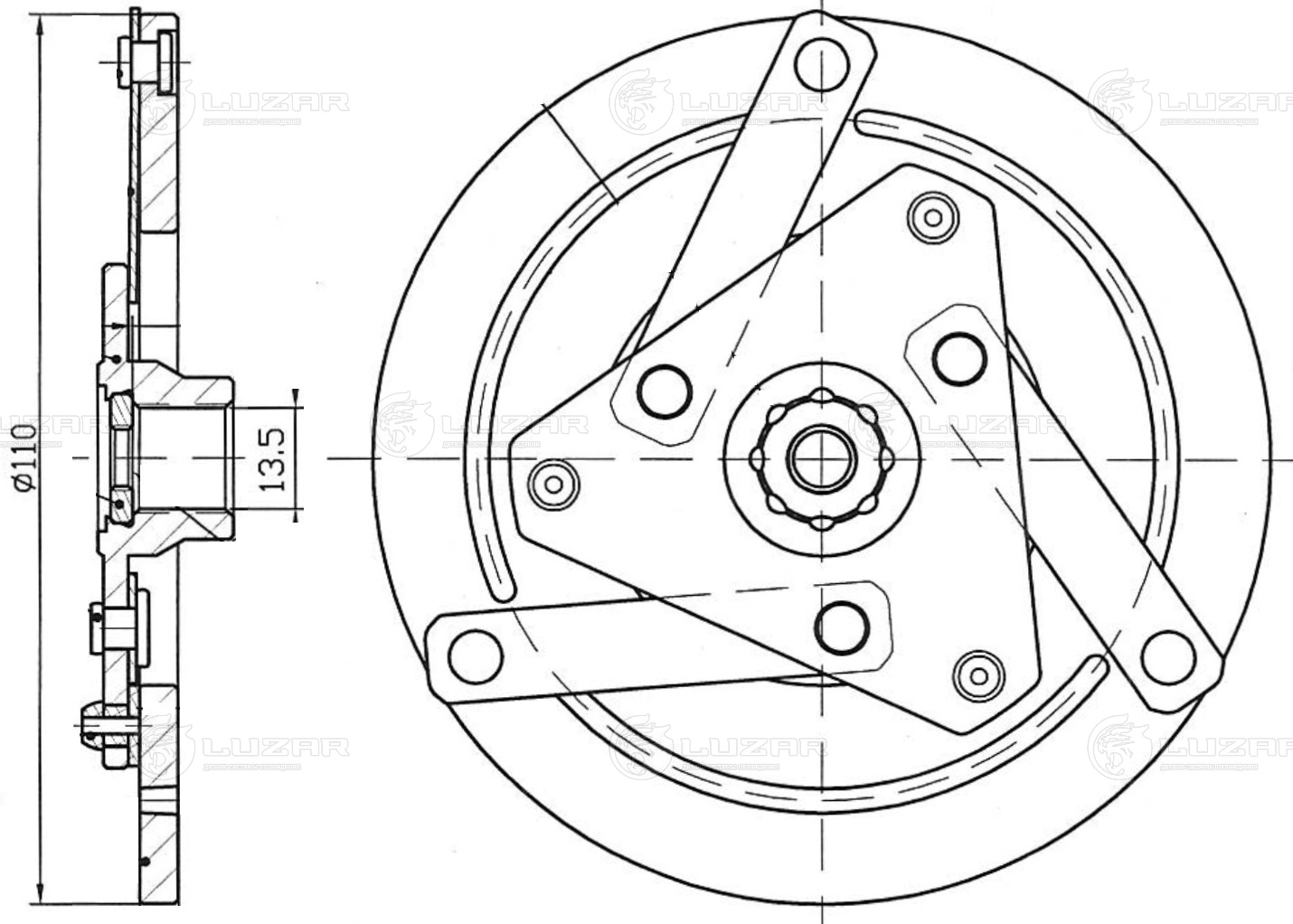 Пластина прижимная муфты компрессора кондиционера для автомобилей Лада Vesta (15-) 1.6i (тип Valeo) (LCP 0103)