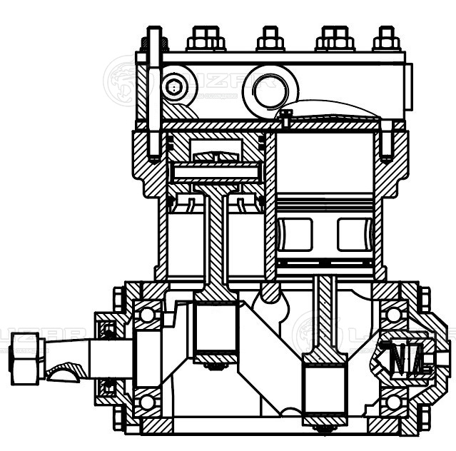 Компрессор воздушный для автомобилей МАЗ с дв. ЯМЗ-7511 (2 цилиндра, 275 л/мин, без шкива)