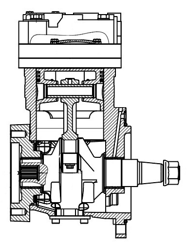 Компрессор воздушный для а/м МАЗ 5440 (96-)/Урал 6370/Renault Trucks Premium I (96-)/Kerax (01-) дв. ЯM3-650/DCi11 (2 цилиндр.)