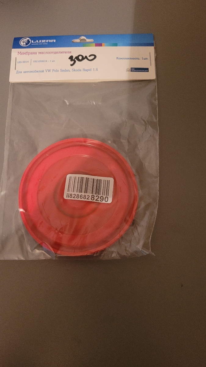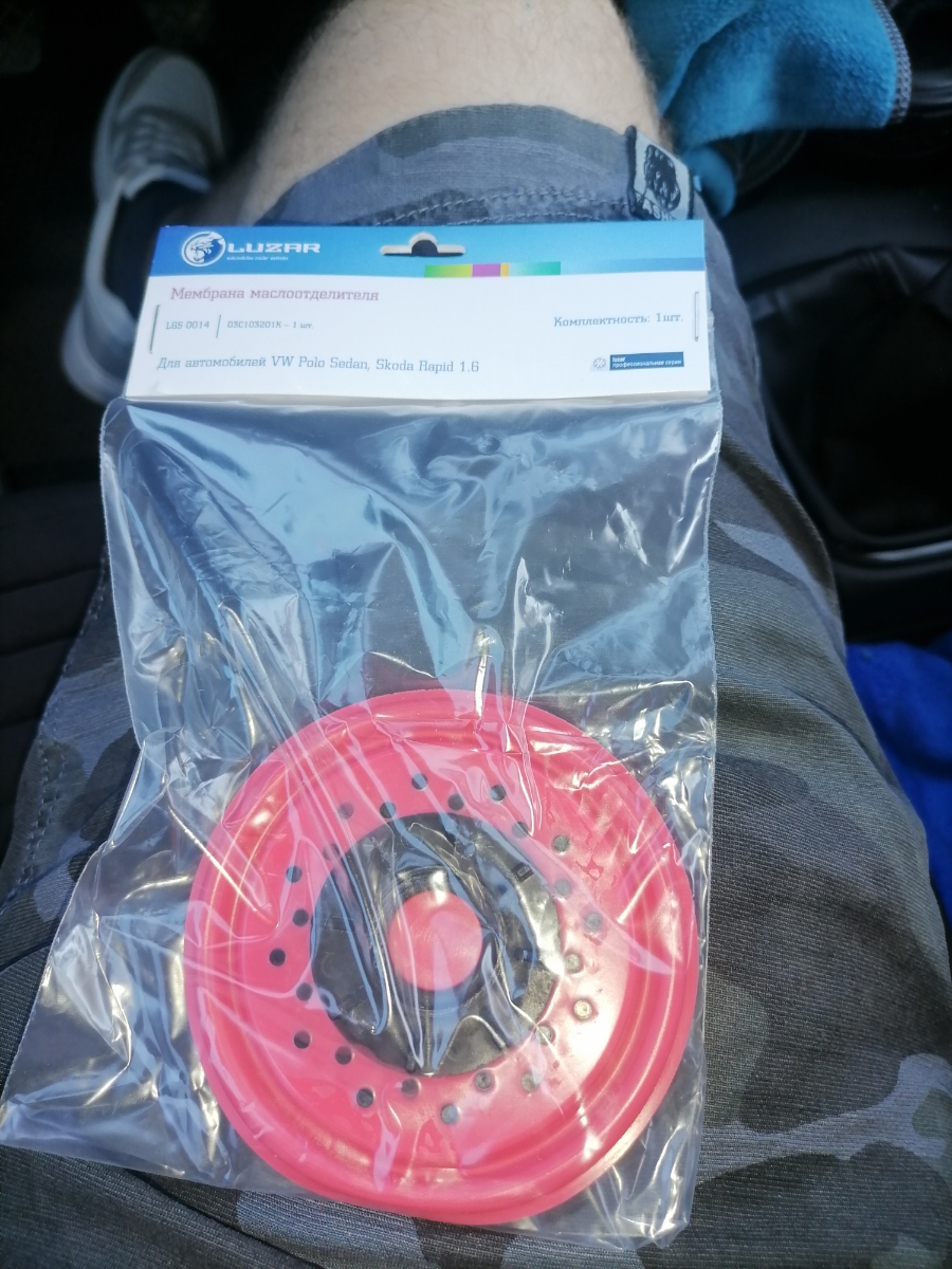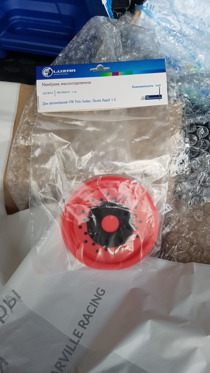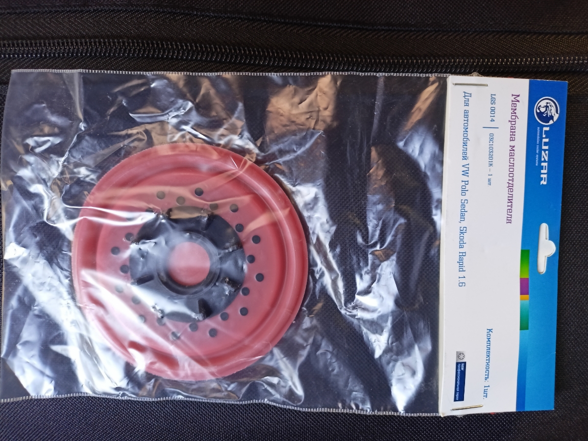 Мембрана маслоотделителя , пришла в целостности и сохранности.Была установлена на vw polo , дв.CFNA 1.6.Всё работает как положено. По качеству не уступает оригиналу. Цена ниже ,чем в авто магазинах. Продавцу респект и огромное спасибо.