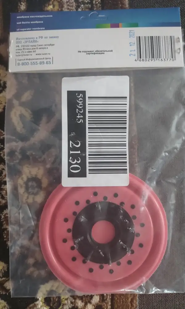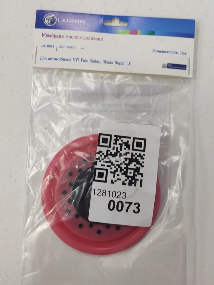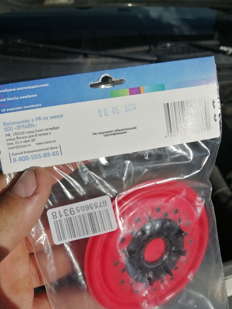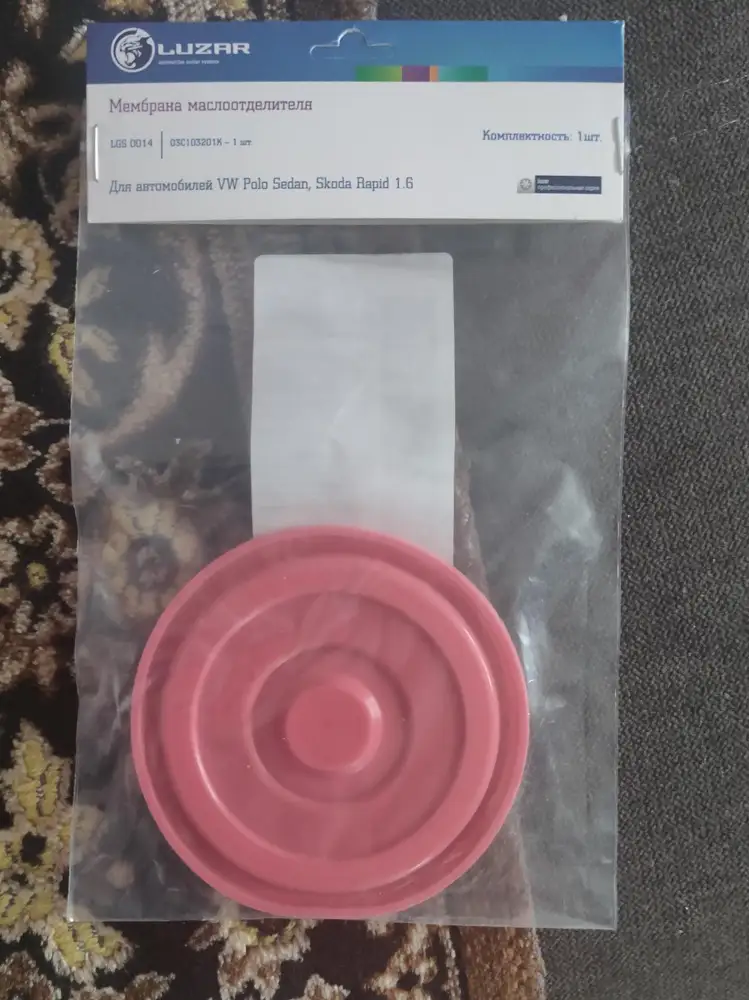 Мембрана маслоотделителя , пришла в целостности и сохранности.Была установлена на vw polo , дв.CFNA 1.6.Всё работает как положено. По качеству не уступает оригиналу. Цена ниже ,чем в авто магазинах. Продавцу респект и огромное спасибо.