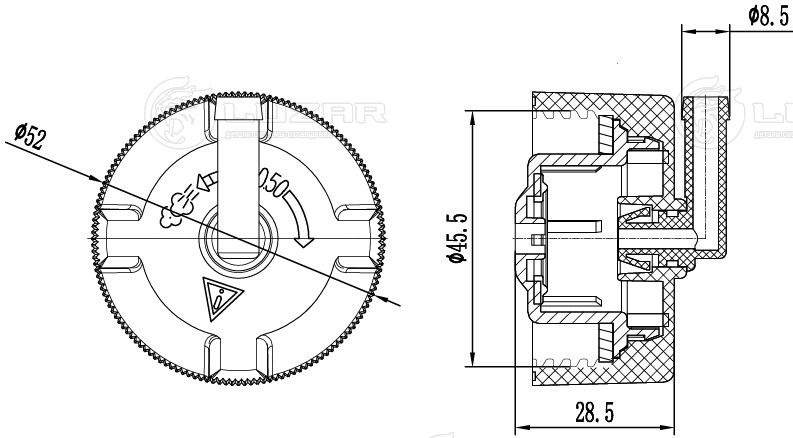 Крышка (пробка) расширительного бачка для с/т JCB 3CX/4CX/214E/3200-65/3230-65/8310 0.5bar
