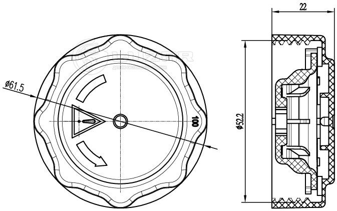 Крышка (пробка) расширительного бачка для спецтехники JCB 3CX/4CX/411/416/TM310/214E/3200-65/8310 1.0bar