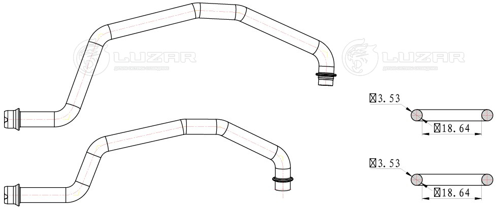 Патрубки радиатора отопителя для а/м Chevrolet Cruze (09-)/Orlando (10-) (алюминий) (комплект 2 шт.)
