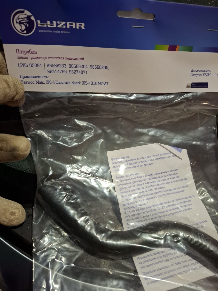 Патрубок отоп. для а/м Daewoo Matiz (98-)/Chevrolet Spark (05-) 0.8i MT/AT отвод. (EPDM,1шт.)
