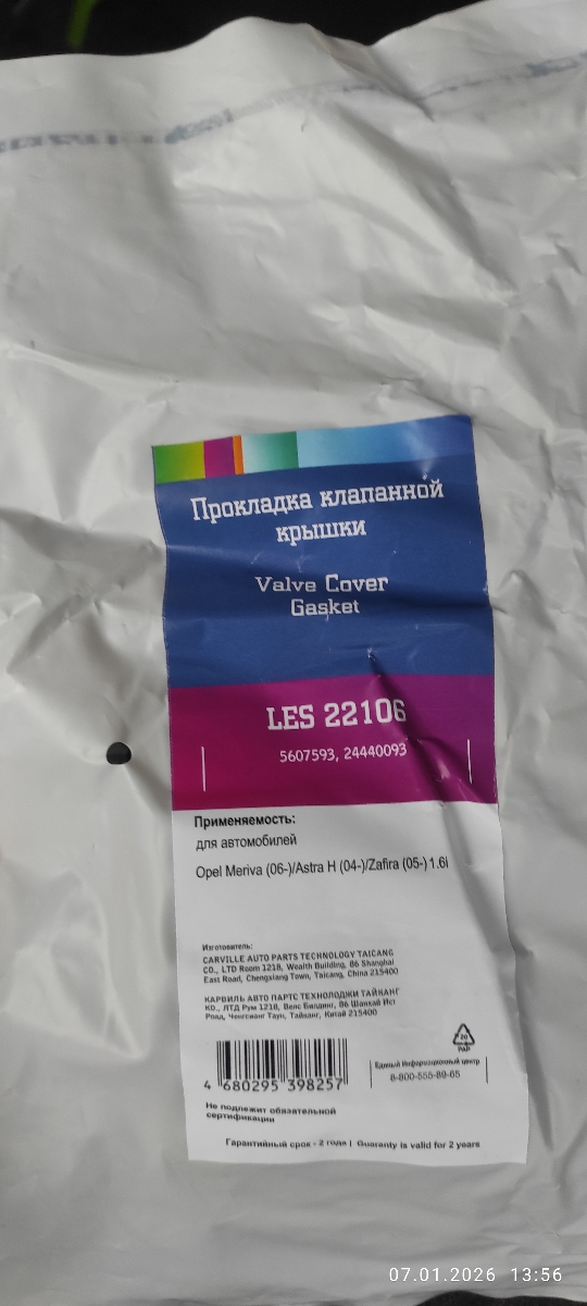 Прокладка клапанной крышки для а/м Opel Astra H (04-)/Meriva A (03-) 1.6i (силикон)