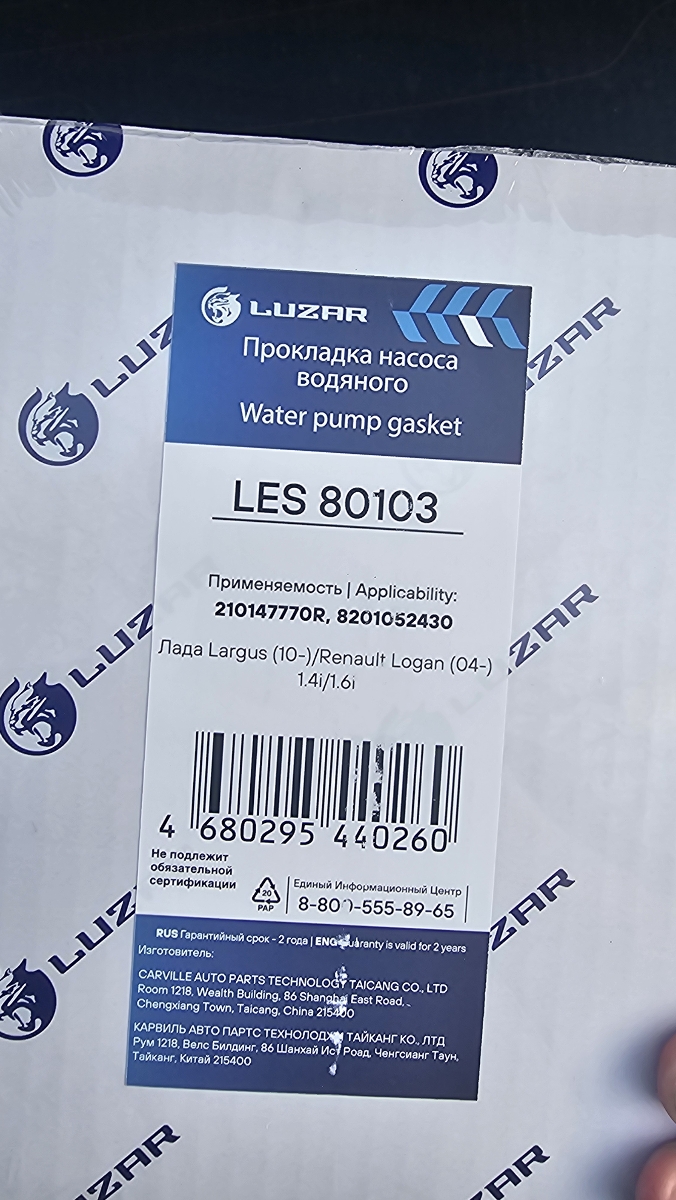 Прокладка насоса водяного для а/м Лада Largus (10-)/Renault Logan (04-) 1.4i/1.6i (метал.)