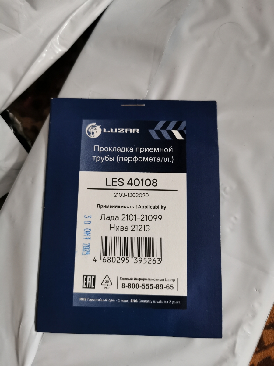 Прокладка приёмной трубы для а/м Лада 2101-21099/Нива 21213 (перфометал.)