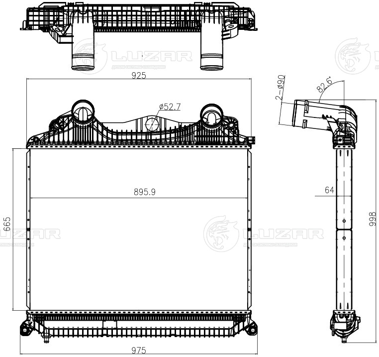 ОНВ (радиатор интеркулера) для автомобилей MAN TGA (02-)/TGS (07-)/TGX (07-) (выс. сердц. 665мм) (патрубки вверх)