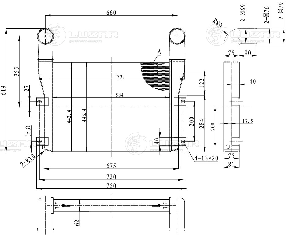 ОНВ (радиатор интеркулера) для автомобилей ПАЗ 3204-03 4ISBe