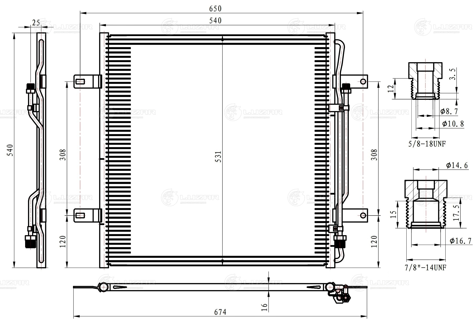 Радиатор кондиционера для автомобилей Mercedes-Benz Atego (98-)/Atego II (04-)