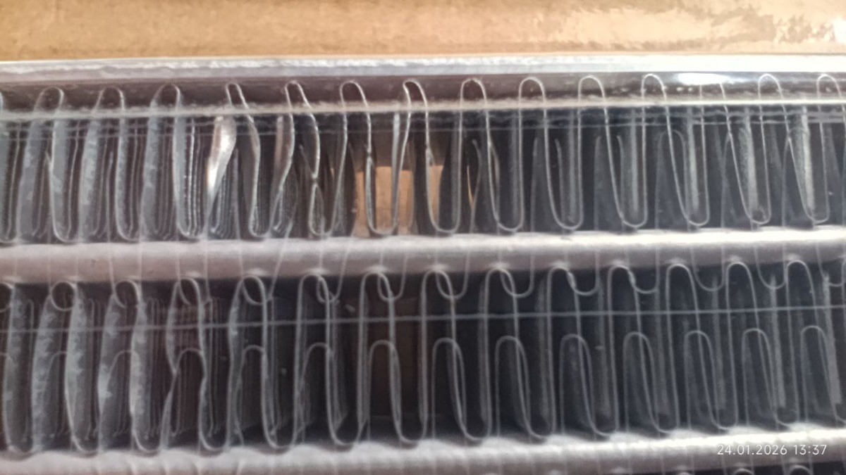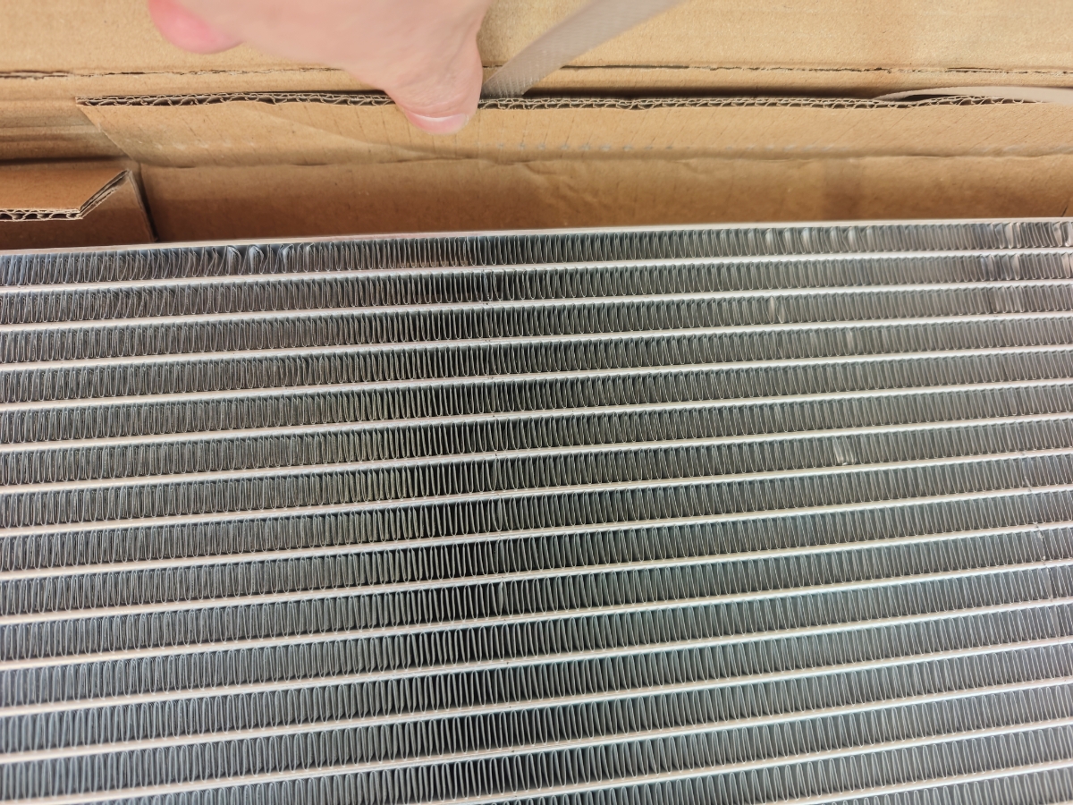 Всё доехало целым, упаковка вроде норм, но коробка жиденькая. Есть пару незначительных вмятинок на сотах, а в общем и целом сам радиатор не деформирован. Упаковка конечно должна быть посерьёзнее.