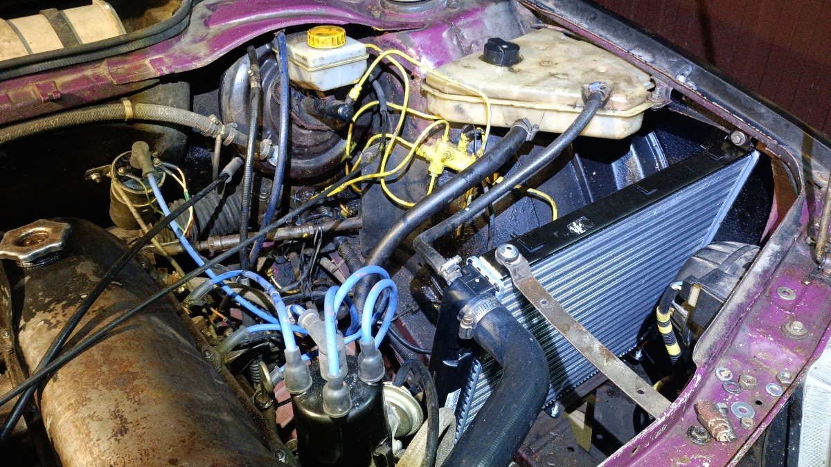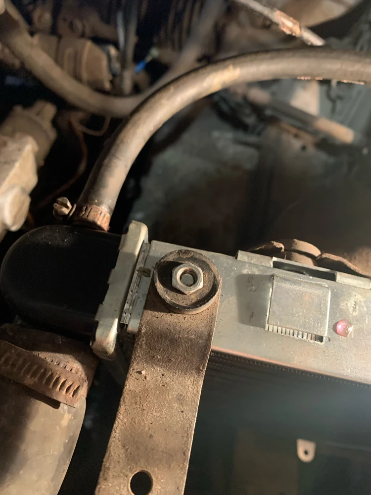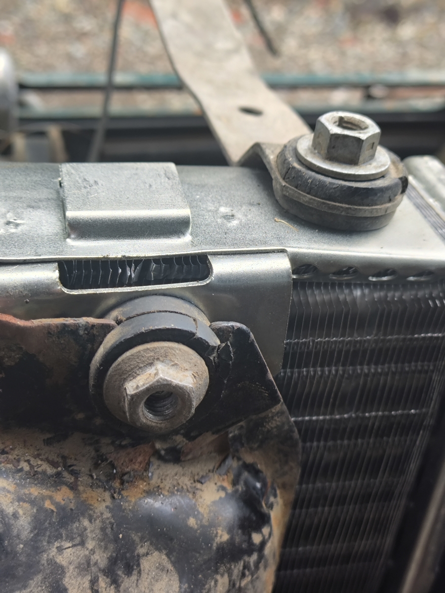 Хороший радиатор подошел как родной. Москвич 21412. 1990 г.в. А вспомнил, болты крепления короткие, поэтому резинки пришлось срезать наполовину.