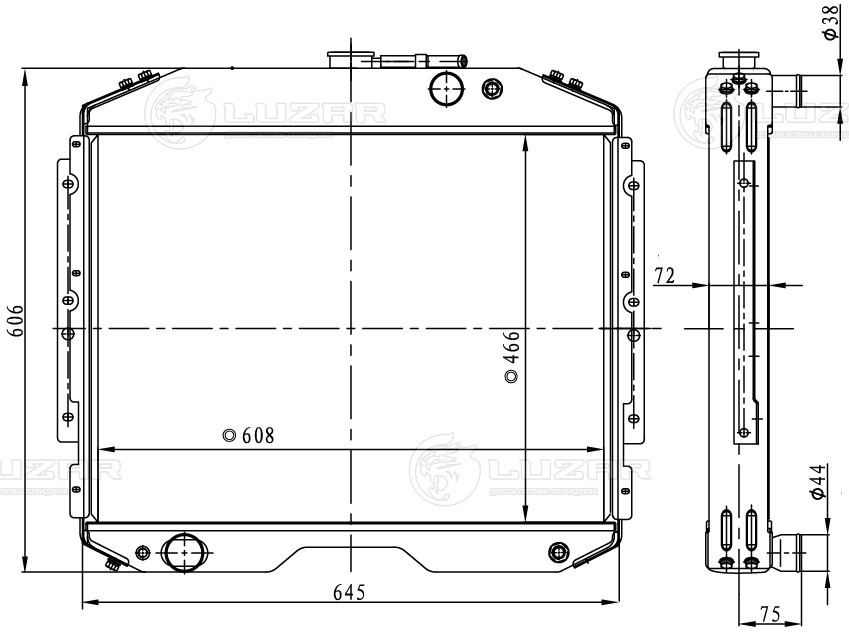 Радиатор охлаждения для автомобилей ГАЗ 3307/3308 с двигателем ЗМЗ-511, ЗМЗ-513, ММЗ Д245.7