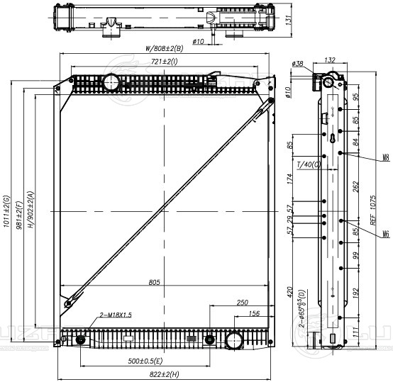 Радиатор охлаждения для автомобилей Actros MP1 (96-)/MP2/MP3 (03-) (высота сердцевины 902мм)