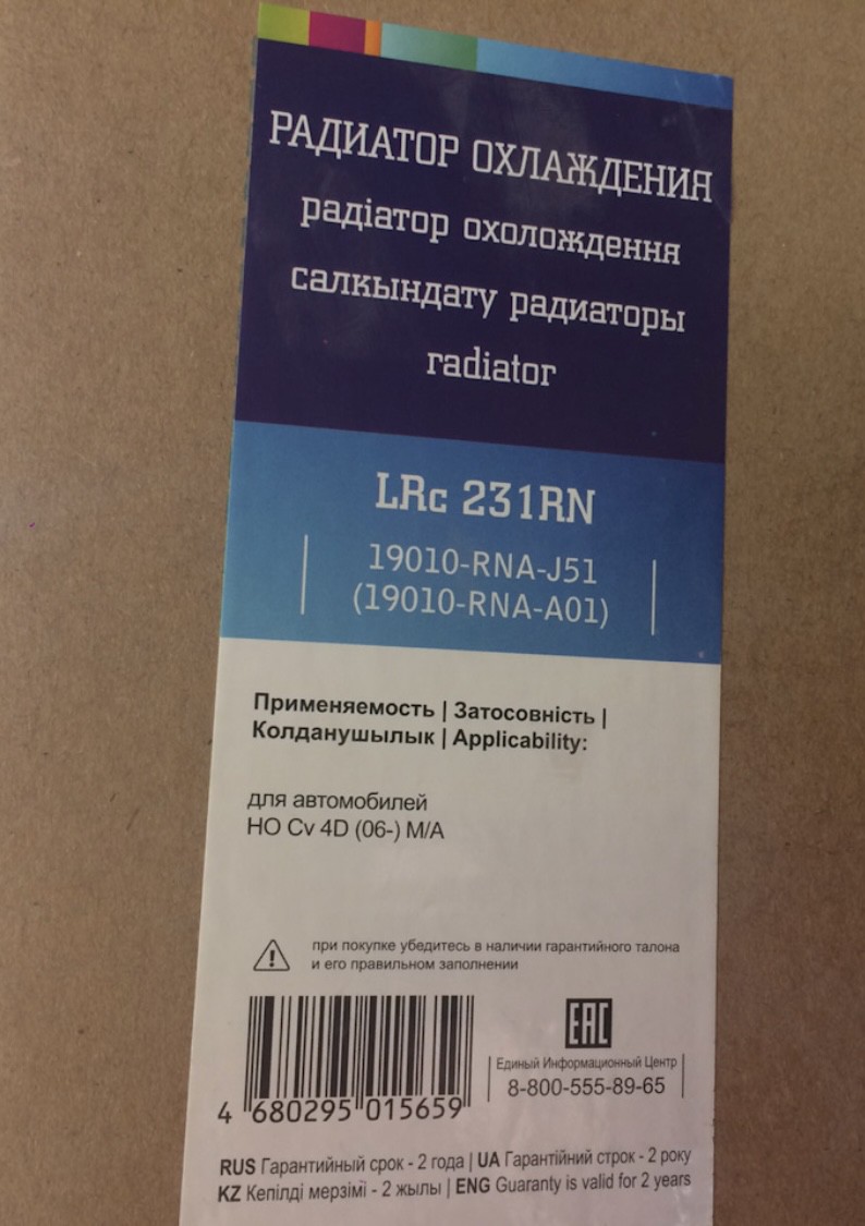 Приобретался для civic 8 1,8 на автомате турецкой сборки. Встал хорошо, размеры как у оригинала,но без косяков не обошлось. Крепления вентиляторов не соосны, если просто прикрутить по штатным креплениям, то левые нижние крепежи милиметра на три ниже получаются, таким образом вентиляторы по нижним крепления держатся по оной опоре на вентиллр. Пришлось сделать две резиновые прокладки что бы отыграть зазоры.