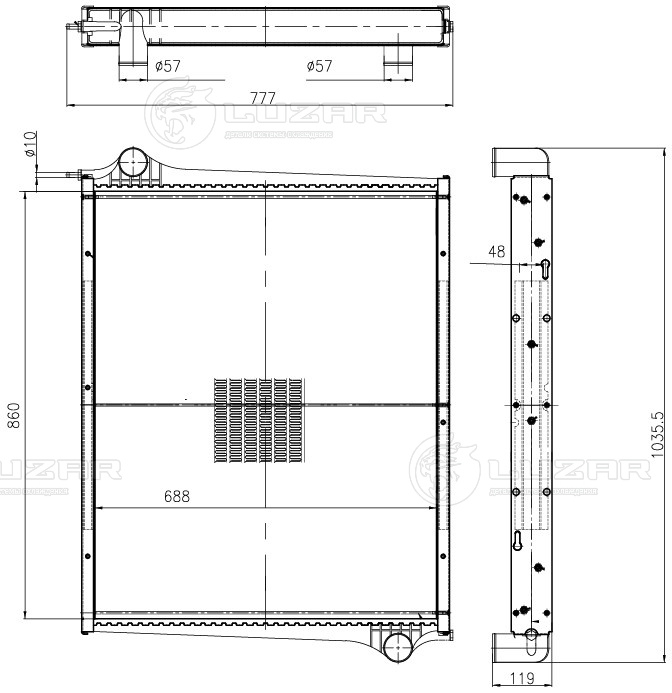 Радиатор охлаждения для автомобилей Scania 4-series (95-) (сердц. 688*860мм) (с рамкой)