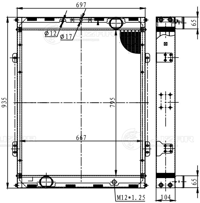 | Особенности конструкции: | Модификация Modine, имеет отличие в диаметре патрубков и точках крепления |