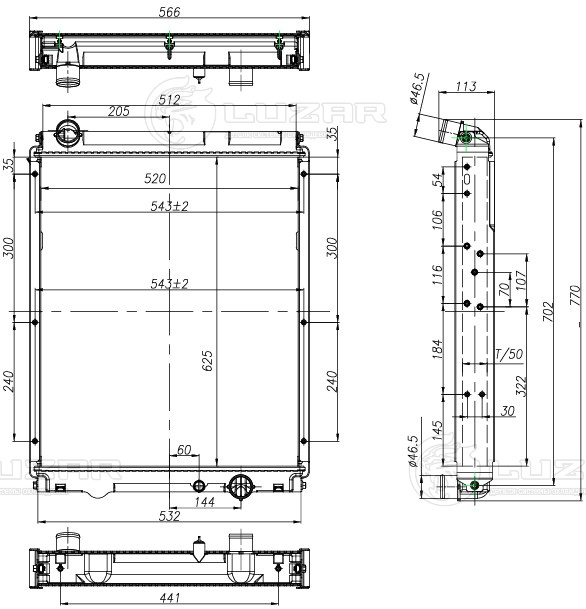 Радиатор охлаждения для автомобилей Fuso Canter TD (11-) 4.9D (с рамкой)