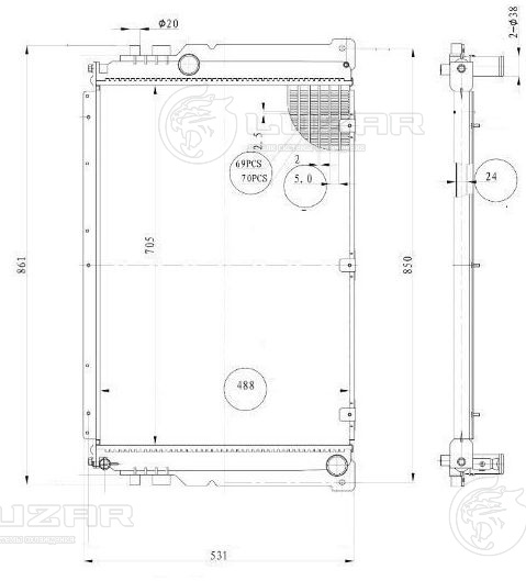 | Высота сердцевины, мм: | 488 |