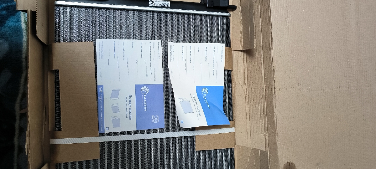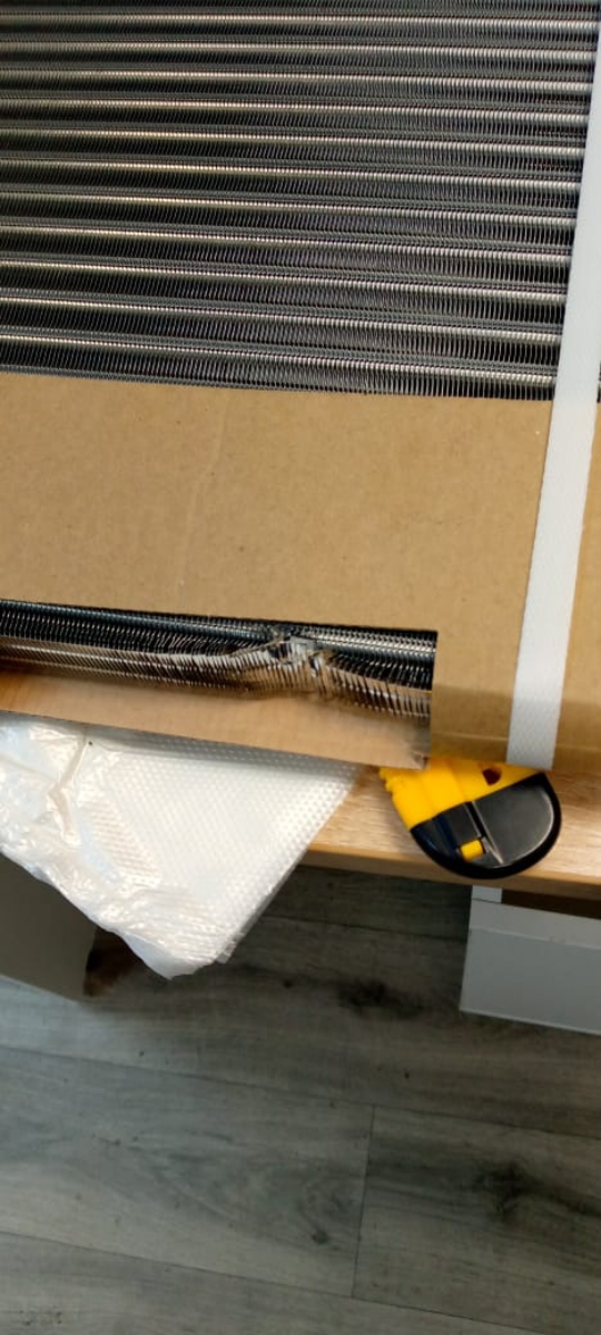 Упаковка была раскрыта такое ощущение, что посмотрели и не закрыли. Упаковку не плохо бы матнуть скотчем или стрейч плёнкой от любопытных . Не много примяты соты, сам радиатор целый. Я так думаю, что это уже вопрос к доставке. Соты поправим и будем устанавливать на авто.