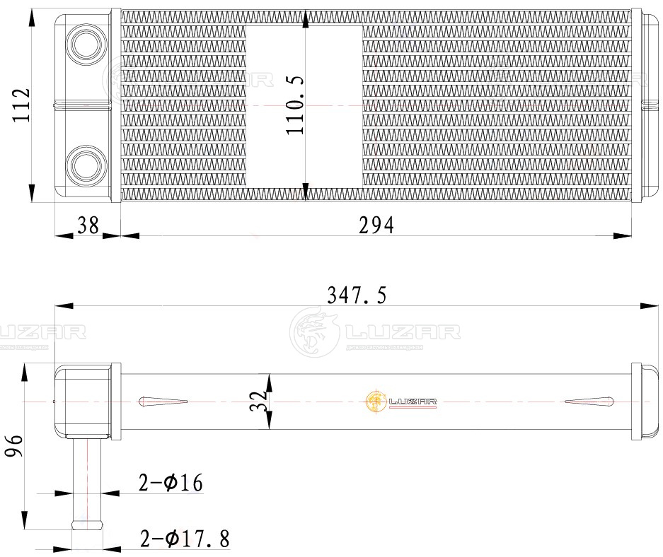 Радиатор отопителя для а/м ЛиАЗ/Волжанин/Кировец (для отопителя ОС-8М 12/24В, тип Август, нового образца)