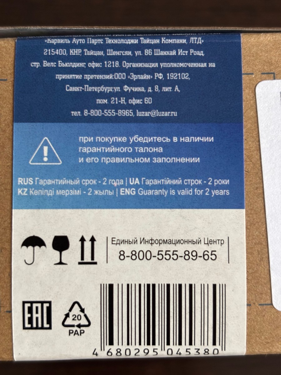 | Количество на автомобиль: | 1 |