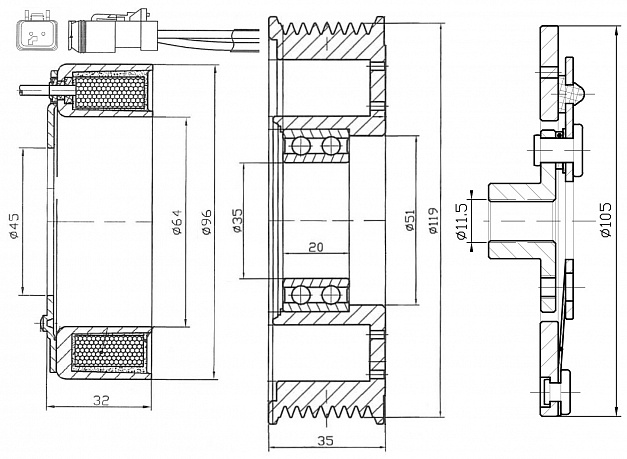 Муфта электромагнитная компрессора кондиционера для автомобилей Volvo FH (93-)